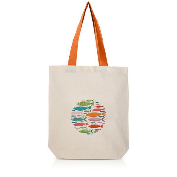 Klasyczna torba bawełniana w naturalnym kolorze z dwoma długimi, kolorowymi uchwytami. Wykonana z grubego, wytrzymałego materiału o gramaturze: 180 g/m2. Długość ucha: ok. 57 cm.