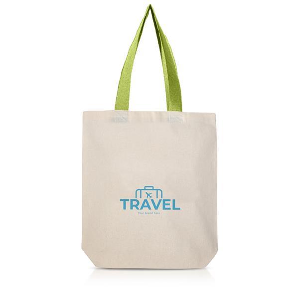 Klasyczna torba bawełniana w naturalnym kolorze z dwoma długimi, kolorowymi uchwytami. Wykonana z grubego, wytrzymałego materiału o gramaturze: 180 g/m2. Długość ucha: ok. 57 cm. Rozmiar: 36 x 39 x 9 cm ST1 (sitodruk na tekstyliach – białe/natural): 26 x 27 Kolor: Jasno zielony