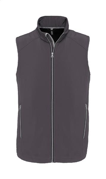 Dwuwarstwowa, zapinana na zamek kamizelka softshell z bocznymi kieszeniami zapinanymi na zamek. Z kontrastowymi zamkami. Materiał wodoodporny. Materiał wierzchni: 95% poliester i 5% elastan. Materiał wewnętrzny: 100% poliester, mikropolar. Gramatura: 300 g/m2. Produkt marki Kariban.