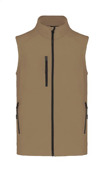 Trójwarstwowa, oddychająca, wiatroszczelna i wodoodporna kamizelka ocieplająca typu softshell z zamkiem błyskawicznym, z kieszeniami na piersi i bocznymi zapinanymi na zamek. Z oddychającą warstwą środkową i wewnętrzną warstwą z mikropolaru. 95% poliester i 5% elastan, 300 g/m2. Produkt marki Kariban.