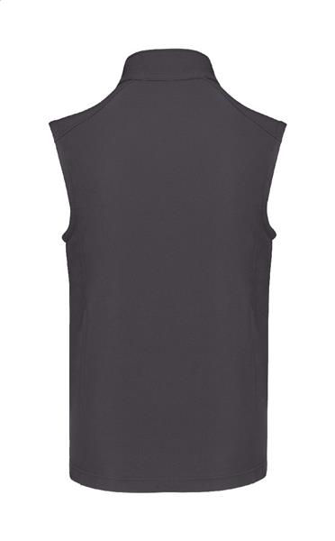 Trójwarstwowa, oddychająca, wiatroszczelna i wodoodporna kamizelka ocieplająca typu softshell z zamkiem błyskawicznym, z kieszeniami na piersi i bocznymi zapinanymi na zamek. Z oddychającą warstwą środkową i wewnętrzną warstwą z mikropolaru. 95% poliester i 5% elastan, 300 g/m2. Produkt marki Kariban.