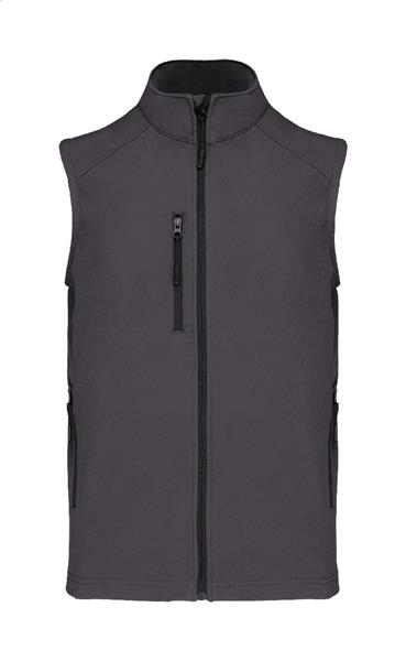 Trójwarstwowa, oddychająca, wiatroszczelna i wodoodporna kamizelka ocieplająca typu softshell z zamkiem błyskawicznym, z kieszeniami na piersi i bocznymi zapinanymi na zamek. Z oddychającą warstwą środkową i wewnętrzną warstwą z mikropolaru. 95% poliester i 5% elastan, 300 g/m2. Produkt marki Kariban.