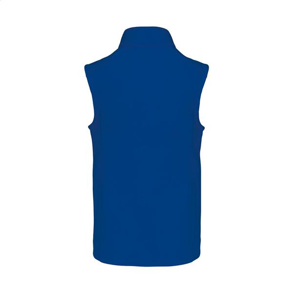 Trójwarstwowa, oddychająca, wiatroszczelna i wodoodporna kamizelka ocieplająca typu softshell z zamkiem błyskawicznym, z kieszeniami na piersi i bocznymi zapinanymi na zamek. Z oddychającą warstwą środkową i wewnętrzną warstwą z mikropolaru. 95% poliester i 5% elastan, 300 g/m2. Produkt marki Kariban.
