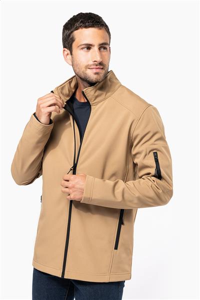 Trójwarstwowa, oddychająca, wiatroszczelna i wodoodporna kurtka softshell zapinana na zamek, z rękawami i kieszeniami bocznymi zapinanymi na zamek. Z oddychającą warstwą środkową i wewnętrzną warstwą z mikropolaru. 95% poliester i 5% elastan, 300 g/m2. Produkt marki Kariban.