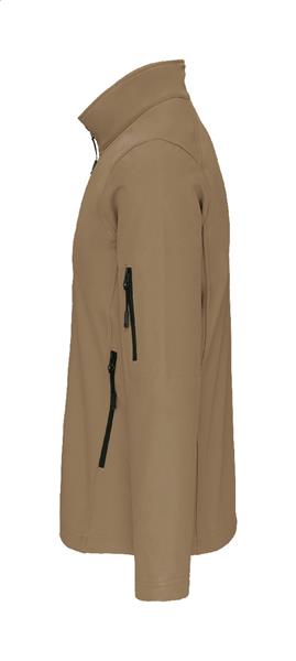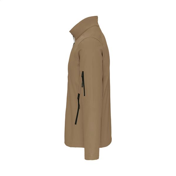 Trójwarstwowa, oddychająca, wiatroszczelna i wodoodporna kurtka softshell zapinana na zamek, z rękawami i kieszeniami bocznymi zapinanymi na zamek. Z oddychającą warstwą środkową i wewnętrzną warstwą z mikropolaru. 95% poliester i 5% elastan, 300 g/m2. Produkt marki Kariban.