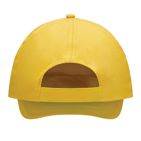 5-segmentowa czapka FAVOURITE z wzmocnionym przodem. 2 haftowane otwory wentylacyjne, guzik, rozmiar regulowany zapięciem na rzep z tyłu. Materiał: 100% Bawełna, 180 g/m2 Kolor: żółty Tagi: Czapki,kapelusze,artykuły rekreacyjne,nakrycia głowy,outdoor,tekstylia