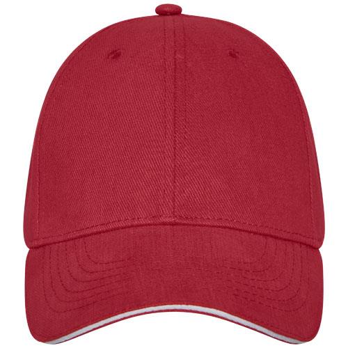 6-panelowa czapka sandwich Darton ma zakrzywiony daszek o stylowym designie sandwich, oferując nie tylko klasyczną estetykę, ale także kluczową ochronę przeciwsłoneczną. Haftowane oczka zapewniają optymalną wentylację, utrzymując Cię w chłodzie i spokoju podczas aktywności na świeżym powietrzu. Obwód głowy wynoszący 58 cm zapewnia wygodne dopasowanie do różnych rozmiarów głowy. Zapięcie na metalową klamrę umożliwia łatwą i bezpieczną regulację. Wykonana z grubej, szczotkowanej bawełny twill o gramaturze 260 g/m2. Idealne akcesorium na swobodne wyjścia lub aktywności na świeżym powietrzu.