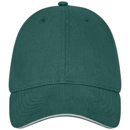 6-panelowa czapka sandwich Darton ma zakrzywiony daszek o stylowym designie sandwich, oferując nie tylko klasyczną estetykę, ale także kluczową ochronę przeciwsłoneczną. Haftowane oczka zapewniają optymalną wentylację, utrzymując Cię w chłodzie i spokoju podczas aktywności na świeżym powietrzu. Obwód głowy wynoszący 58 cm zapewnia wygodne dopasowanie do różnych rozmiarów głowy. Zapięcie na metalową klamrę umożliwia łatwą i bezpieczną regulację. Wykonana z grubej, szczotkowanej bawełny twill o gramaturze 260 g/m2. Idealne akcesorium na swobodne wyjścia lub aktywności na świeżym powietrzu.
