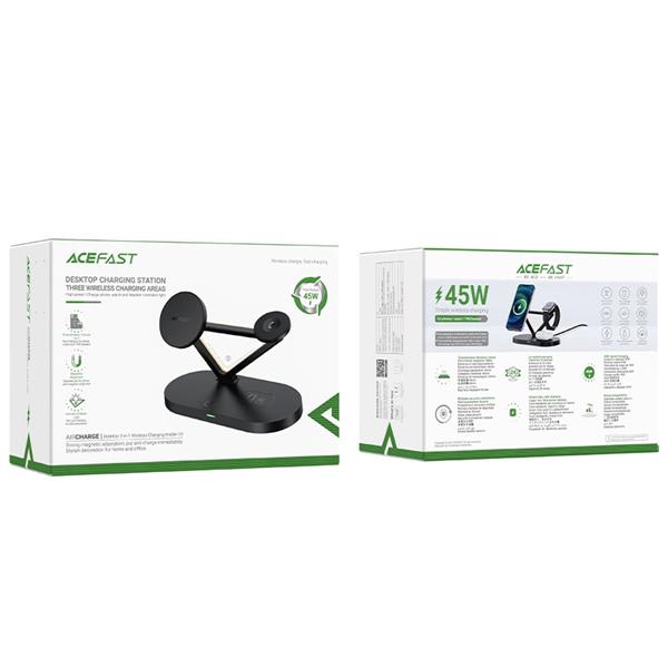 Bezprzewodowa ładowarka Qi Acefast o mocy do 15W do telefonów iPhone (z MagSafe), zegarków Apple Watch i słuchawek Apple AirPods – stojak, podstawka, uchwyt magnetyczny – czarny (E9 black)