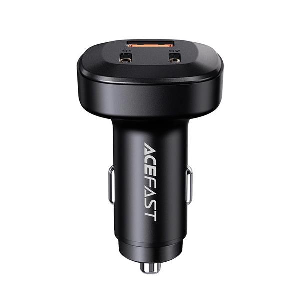 Szybka ładowarka samochodowa marki Acefast. Posiada 2 porty USB Typ C i 1 USB. Wtyczki USB Typ C umożliwiają ładowanie z mocą 36W i 30W, łącznie wytrzymują obciążenie do 66W. Pozwala na szybkie ładowanie m.in. w standardach PPS, Power Delivery, Quick Charge 4.0, AFC i FCP. Można do niej podłączyć 3 urządzenia jednocześnie. Jest wykonana z ognioodpornego materiału PC. Została wyposażona w wiele zabezpieczeń takich jak np. przed przegrzaniem, przepięciem, wysokim napięciem czy przeciążeniem.