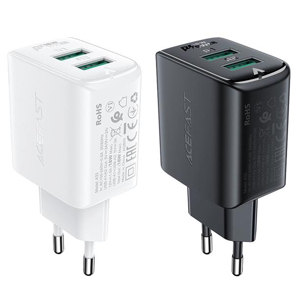 Acefast ładowarka sieciowa 2x USB 18W QC 3.0, AFC, FCP biały (A33 white)