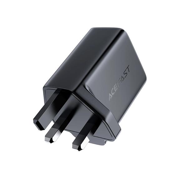 Szybka ładowarka sieciowa marki Acefast. Przeznaczona na rynek brytyjski, pasuje do gniazd typu UK. Posiada łącznie 2 porty, USB Typ C i USB. Pierwsza wtyczka USB Typ C oznaczona jako „C1” umożliwia ładowanie z maksymalną mocą 20W, a wtyczka USB A1 do 12W. Pozwala na szybkie ładowanie m.in. w standardach PPS, Power Delivery, Quick Charge 3.0, AFC i FCP. Można do niej podłączyć 2 urządzenia jednocześnie. Jest wykonana z ognioodpornego materiału PC. Została wyposażona w wiele zabezpieczeń takich jak np. przed przegrzaniem, przepięciem, wysokim napięciem czy przeciążeniem.