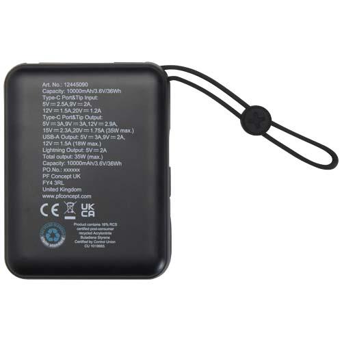 Acrux powerbank do tabletu o pojemności 10 000 mAh i mocy 35 W z wbudowanym kablem typu C – wykonany z tworzyw sztucznych poc