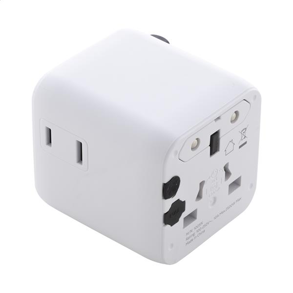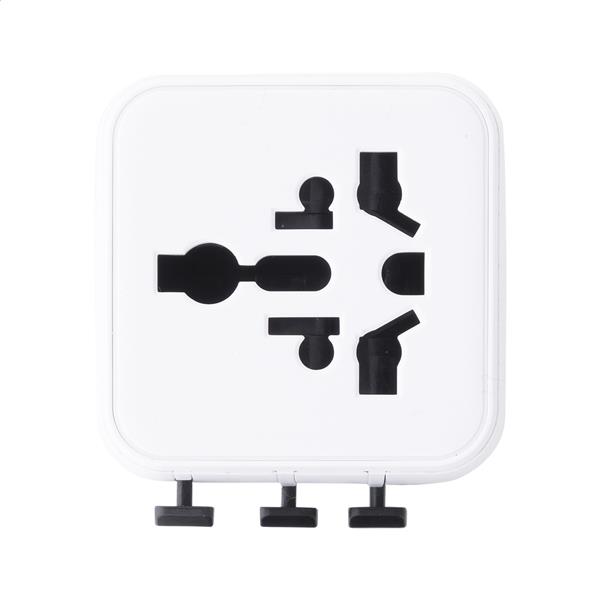 Ultrakompaktowy, uniwersalny adapter podróżny wykonany z przetworzonego plastiku PC, z wbudowanymi końcówkami do gniazdek w USA, Europie, Wielkiej Brytanii i Australii.