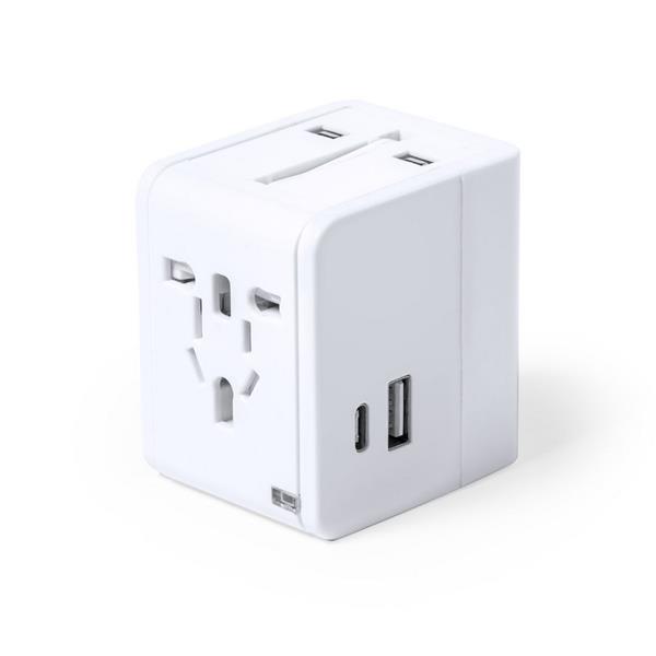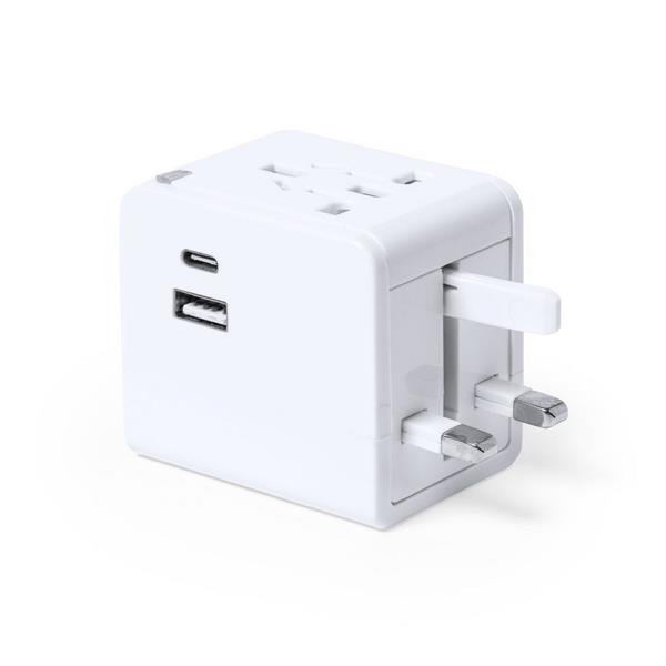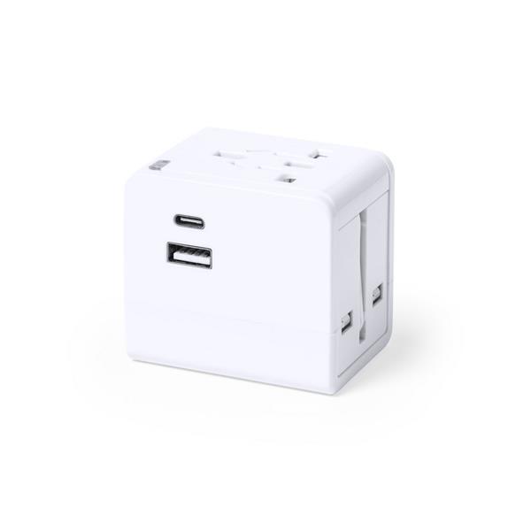 Uniwersalna ładowarka, adapter podróżny, wyjście USB QC (Quick Charge) 18W, wyjście USB typu C 20W, technologia szybkiego ładowania PD (Power Delivery), welurowy woreczek w komplecie, wtyczki z: USA, Europy, Azji, UK, Australii