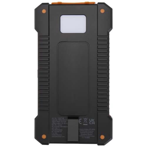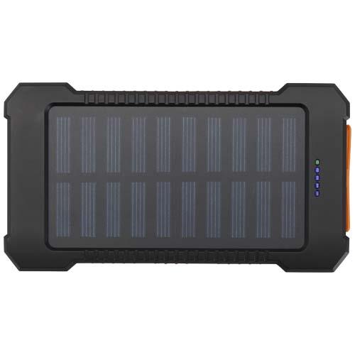 Powerbank solarny Altair o pojemności 5000 mAh, wykonany z tworzyw sztucznych pochodzących z recyklingu, jest wytrzymały i wygodny. Urządzenie wyposażono w dwa porty wyjściowe USB-A i port wejściowo-wyjściowy typu USB-C, co zapewnia elastyczne opcje ładowania. Powerbank wyposażono w wytrzymałą obudowę, ma zdejmowany klips umożliwiający łatwe mocowanie, wbudowaną latarkę i złącza bezpiecznie ukryte pod silikonową osłoną. Dzięki możliwości ładowania energią słoneczną i wskaźnikowi LED pokazującemu stan naładowania, ten powerbank jest idealnym towarzyszem przygód na świeżym powietrzu.