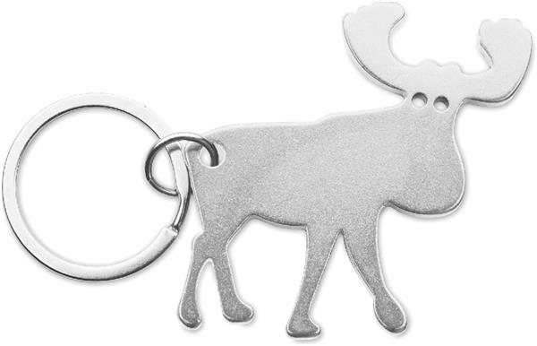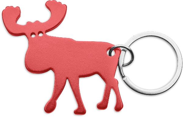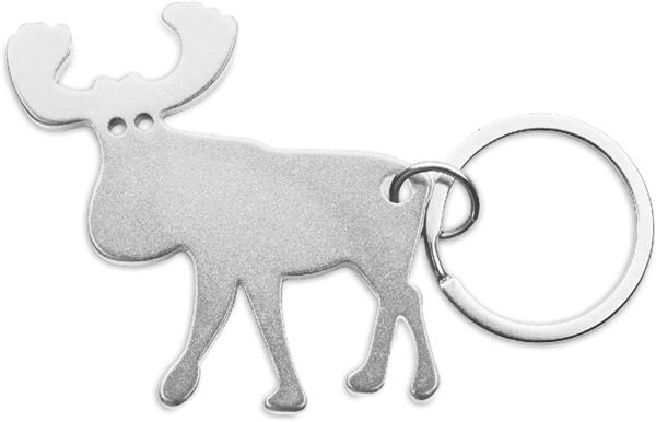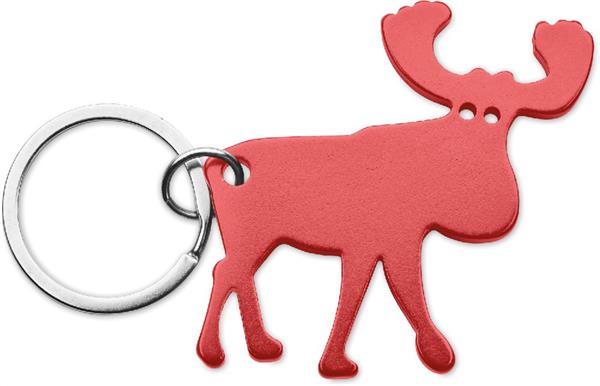 Aluminiowy brelok z recyklingu z otwieraczem do butelek w kształcie renifera.