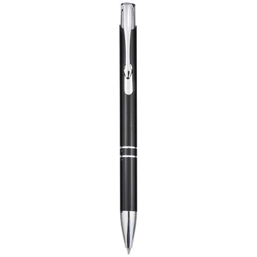 Aluminiowy długopis automatyczny MonetaDługopis automatyczny z lakierowanym wykończeniem, połyskiem i wyrazistymi chromowanymi detalami. Bogaty i popularny asortyment Moneta jest dostępny w wielu różnych stylach i wykończeniach.Wysokość: 13,5 cm Materiał: Aluminium Kolor: Czarny