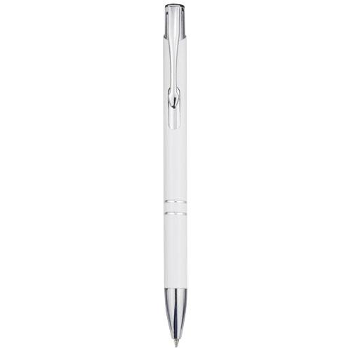 Aluminiowy długopis automatyczny MonetaDługopis automatyczny z lakierowanym wykończeniem, połyskiem i wyrazistymi chromowanymi detalami. Bogaty i popularny asortyment Moneta jest dostępny w wielu różnych stylach i wykończeniach.Wysokość: 13,5 cm Materiał: Aluminium Kolor: Biały