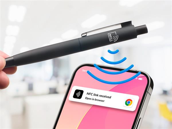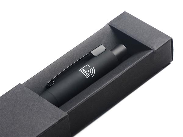 Kolor wkładu – czarny Programowalne NFC (www, tel, email, adres google maps) Zaprogramowanie długopisu w cenie Pudełko papierowe w cenie