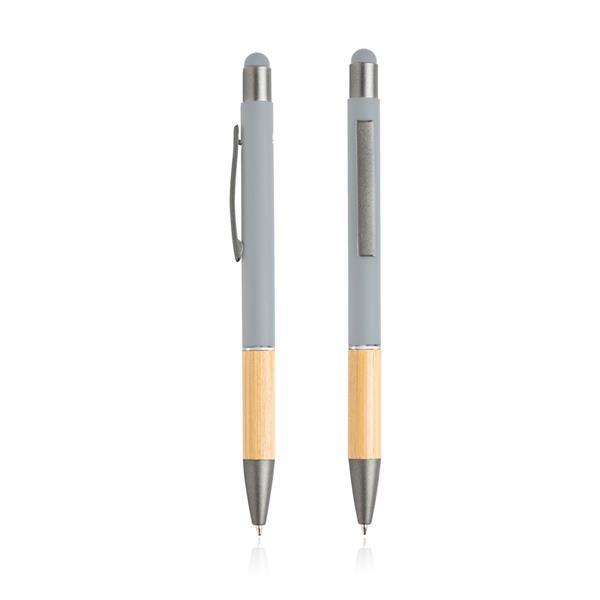 Aluminiowy długopis pochodzący z recyklingu. Posiada funkcje touch oraz oraz elegancki bambusowy uchwyt. Rozmiar: 14,6 x 1 cm Kolor: Light grey