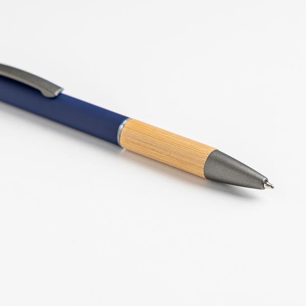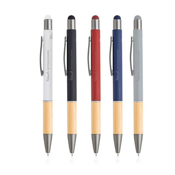 Aluminiowy długopis pochodzący z recyklingu. Posiada funkcje touch oraz oraz elegancki bambusowy uchwyt.