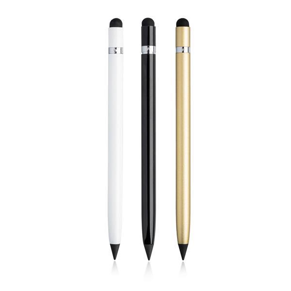 Aluminiowy ołówek z niekończącym się wkładem. Dzięki specjalnej końcówce z włókna węglowego i dzięki oksydacji ten ołówek będzie pisał wiecznie i nigdy nie będziesz potrzebować kolejnego! Nie wymaga temperowania i posiada gumkę ukrytą w metalowej oprawie. Wyposażony również w końcówkę do obsługi ekrenów dotykowych.
