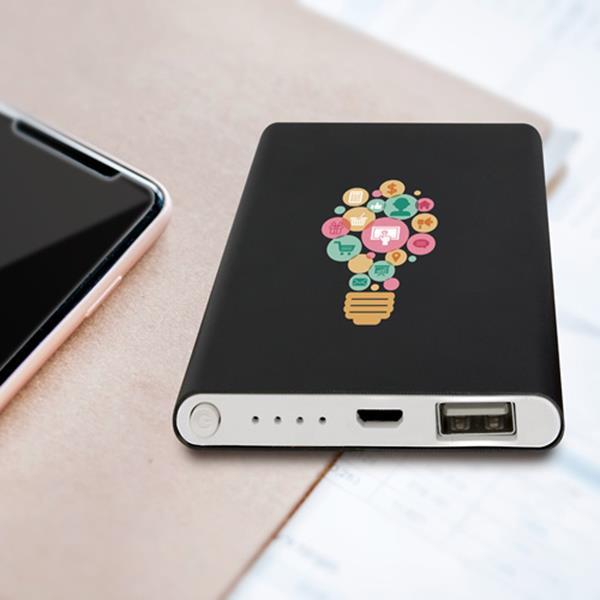 Power bank o pojemności 4000 mAh, wykonany z aluminium. Posiada wskaźnik naładowania, latarkę, oraz port USB i micro USB. Rozmiar: 7 x 11 x 1 cm L3 (grawer laserowy): 4 x 3 Kolor: Light grey