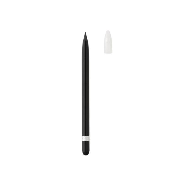 „Wieczny” ołówek z gumką, aluminiuowy trzon, dzięki wykorzystaniu specjalnej wolnościerającej się grafitowej końcówki długość pisania ołówka to około 20 000 metrów, notatki można zmazać standardową gumką do mazania, ślad węglowy produktu: 0,12 kg CO2