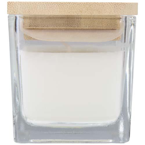 Ambra kwadratowa świeca w szkle z bambusową pokrywką