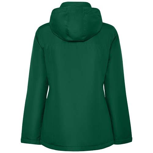 Wodoodporna, ocieplana kurtka typu parka dla kobiet. Dopasowany krój. Wysoki kołnierz ze składanym i odpinanym kapturem zapinanym na rzep. Pasujący centralny zamek błyskawiczny z patką. Kieszenie boczne z zamkiem błyskawicznym i patką. Wewnętrzna kieszeń z zapięciem na rzep. Regulowane mankiety z zapięciem na rzep. Wewnętrzny dostęp do wzmocnień na plecach i lewej piersi.