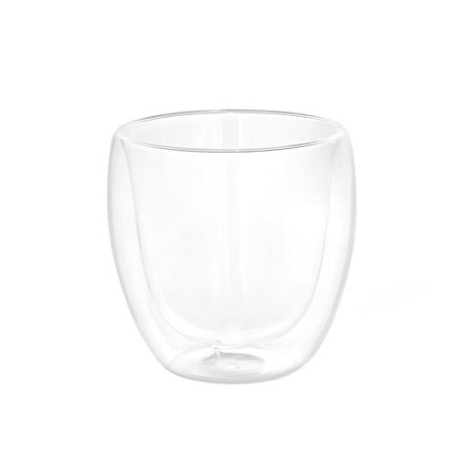 Szklany kubek szkła borokrzemowego z podwójną ścianką izolowaną powietrzem, o pojemności do 220 mL. Dostarczany w pudełku prezentowym z możliwością personalizacji. o80 x 86 mm
