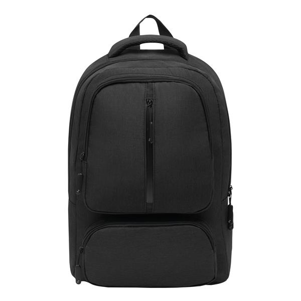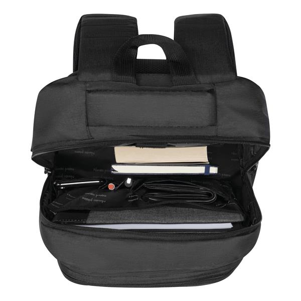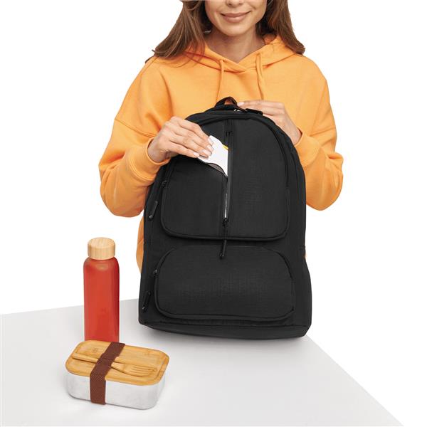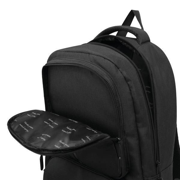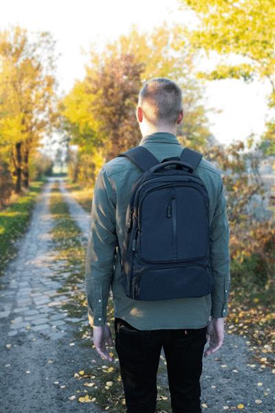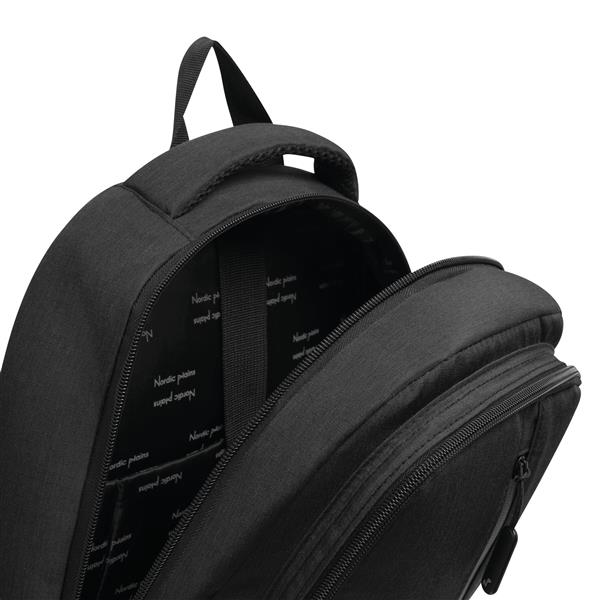 Plecak AMSTERDAM z komorą główną oraz 3 przednimi kieszeniami zamykanymi na zamek błyskawiczny. Z wewnętrzną, wyściełaną kieszenią na laptopa lub tablet oraz organizerem z 5 kieszeniami. Pętla do mocowania, wyściełany uchwyt do przenoszenia, wyściełane ergonomiczne szelki i obszar pleców. Pas bagażowy do mocowania umieszczony na plecach. Produkt marki Nordic plains.