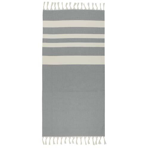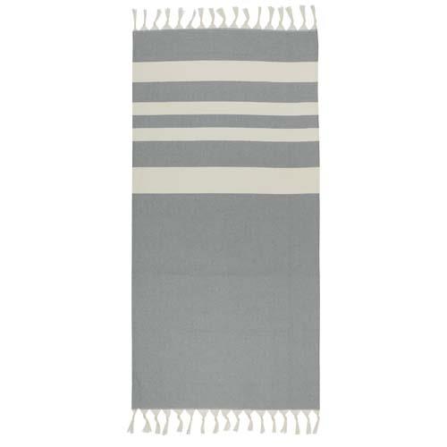 Ręcznik hammmam Anders zapewniający luksusowy komfort dzięki dużym wymiarom (147 x 75,5 cm) oraz dużą osłonę, niezależnie od tego, czy wylegujesz się przy basenie, czy spędzasz dzień na plaży.. Ręcznik ma eleganckie frędzle na obu końcach i jest wykonany z 30% bawełny, 35% bawełny z recyklingu z certyfikatem GRS i 35% poliestru z recyklingu z certyfikatem GRS, 180 g/m2.