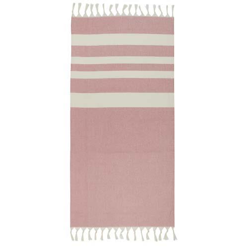 Ręcznik hammmam Anders zapewniający luksusowy komfort dzięki dużym wymiarom (147 x 75,5 cm) oraz dużą osłonę, niezależnie od tego, czy wylegujesz się przy basenie, czy spędzasz dzień na plaży.. Ręcznik ma eleganckie frędzle na obu końcach i jest wykonany z 30% bawełny, 35% bawełny z recyklingu z certyfikatem GRS i 35% poliestru z recyklingu z certyfikatem GRS, 180 g/m2.