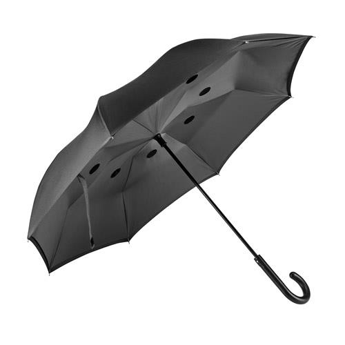 Dwustronny parasol. 190T pongee. Podwójna osłona. Konstrukcja z metalu i włókna szklanego. Ręczne otwieranie i automatyczne zamykanie. Opatentowana konstrukcja. o1050 x 790 mm