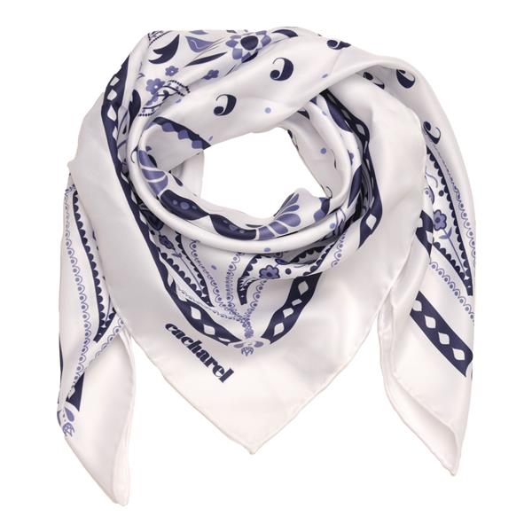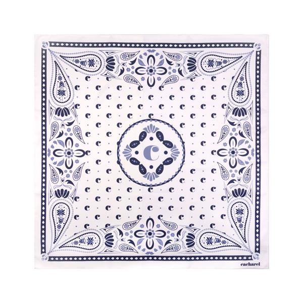 Apaszka Alesia wykonana z syntetycznego jedwabiu zdobiona nadrukiem typu paisley, rozmiar 65X65 cm sprawia, że jest to bardzo uniwersalny dodatek, który można nosić na setki różnych sposobów. Rozmiar: 700 x 700 mm T4 (tampodruk): 4 x 0,5 Kolor: Biały