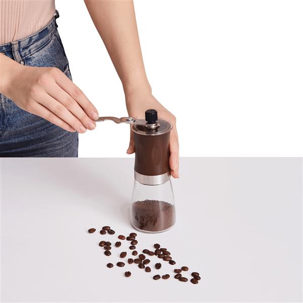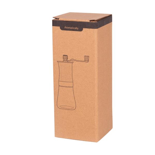 Młynek do kawy AROMATICALLY. Kompaktowy młynek ręczny ze szklanym pojemnikiem o pojemności ok. 160 ml. Młynek i korbka ze stali nierdzewnej, mechanizm ceramiczny. Łatwa obsługa i ustawianie grubości mielenia.