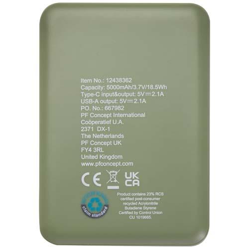 Asama powerbank o pojemności 5000 mAh Type-C z tworzyw sztucznych pochodzących z recyklingu