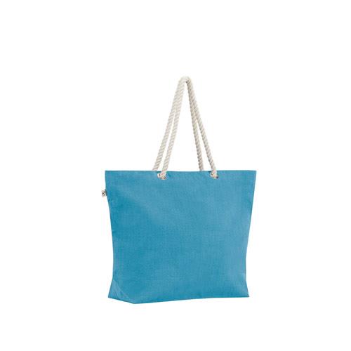 Torba plażowa z bawełny pochodzącej z recyklingu (70%) i poliestru pochodzącego z recyklingu (30%) (220 g/m2). Uchwyty o długości 65 cm są wykonane ze skręconej bawełnianej liny, co zapewnia wygodę i nawiązuje do morskiego stylu. Bawełna z recyklingu jest jednobarwna i niebarwiona. Surowiec jest używany w swojej oryginalnej formie i kolorze, bez użycia barwiących lub wybielających chemikaliów, co przyczynia się do zmniejszenia wpływu na środowisko. Jednolity kolor uzyskuje się poprzez wybór przędzy z recyklingu o tym samym odcieniu, mogą pojawić się z tego powodu pewne różnice kolorystyczne. 550 x 390 x 150 mm