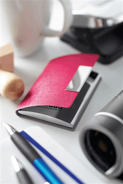 Wizytownik ATLAS z zapięciem magnetycznym i blaszką do nadruku. Materiał: Stop cynkowy/PU Kolor: magenta Tagi: Etui na wizytówki,akcesoria biurowe,akcesoria podróżne