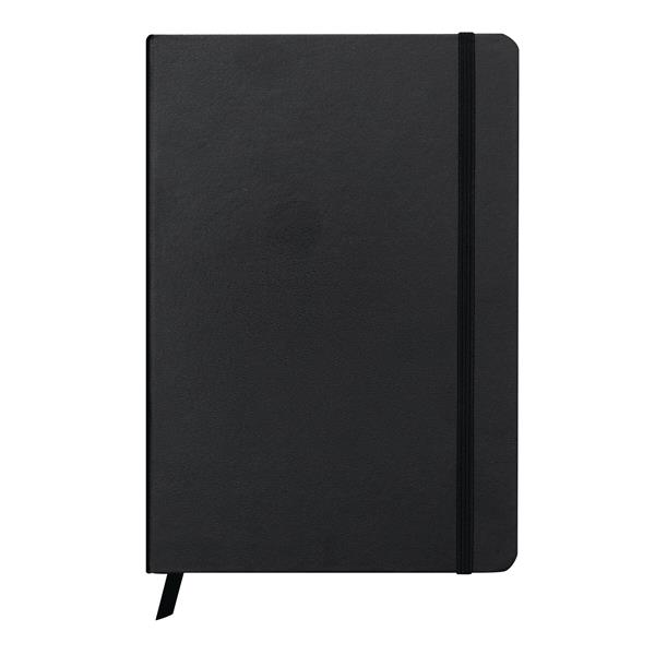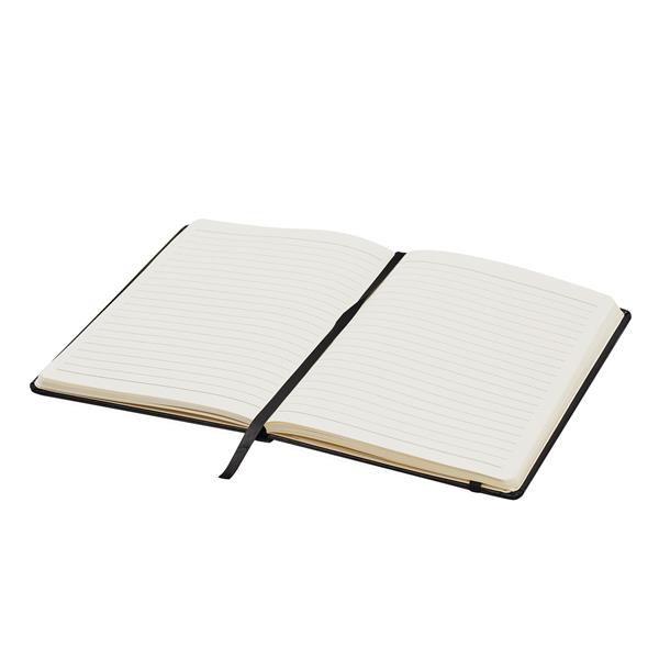 Notes ATTENDANT w formacie A5 z zaokrąglonymi rogami, zamykany gumką, z wszytymi zakładkami i dodatkową kieszenią z tyłu na notatki, 80 kartek w linie, gramatura ok. 80 g/m2. Materiał: Papier Kolor: czarny Tagi: notebooki,akcesoria biurowe