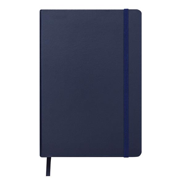 Notes ATTENDANT w formacie A5 z zaokrąglonymi rogami, zamykany gumką, z wszytymi zakładkami i dodatkową kieszenią z tyłu na notatki, 80 kartek w linie, gramatura ok. 80 g/m2. Materiał: Papier Kolor: granatowy Tagi: notebooki,akcesoria biurowe
