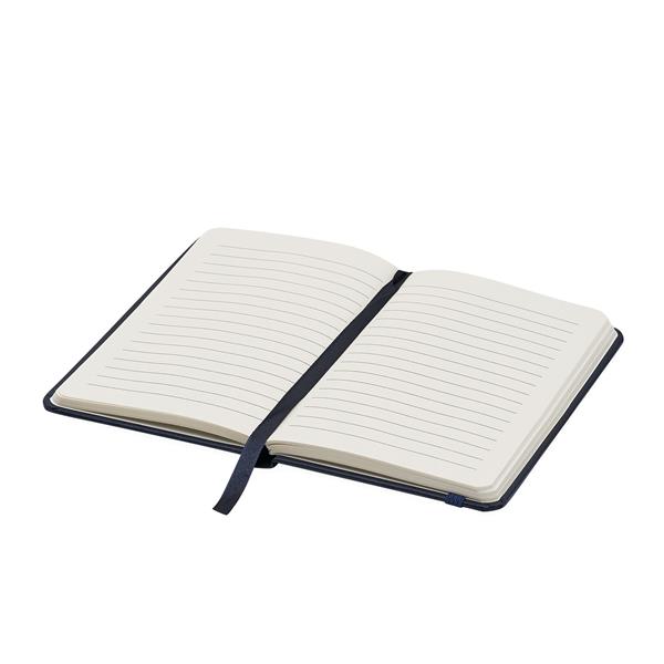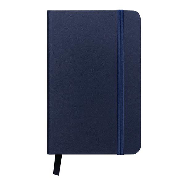 Notes ATTENDANT w formacie A6, z zaokrąglonymi rogami, zamykany gumką, z wszytymi zakładkami, 80 kartek w linie, gramatura ok. 80 g/m2. Materiał: Papier Kolor: granatowy Tagi: notebooki,akcesoria biurowe
