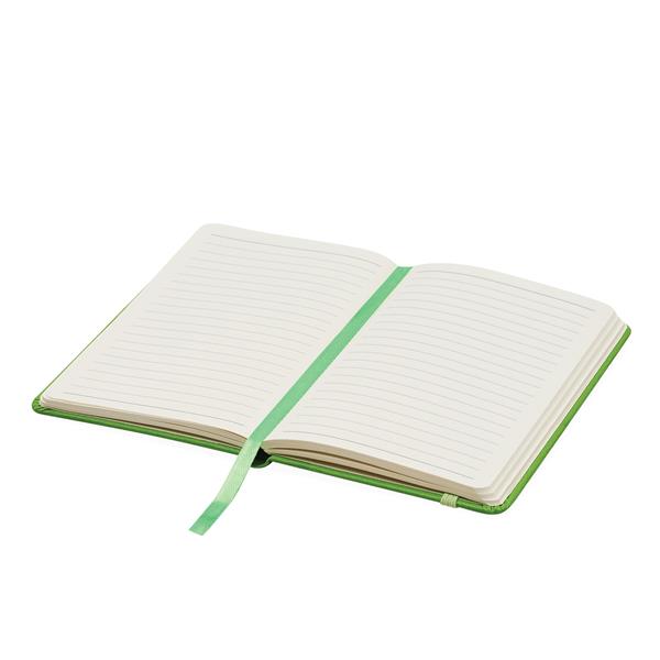 Notes ATTENDANT w formacie A6, z zaokrąglonymi rogami, zamykany gumką, z wszytymi zakładkami, 80 kartek w linie, gramatura ok. 80 g/m2. Materiał: Papier Kolor: zielony Tagi: notebooki,akcesoria biurowe