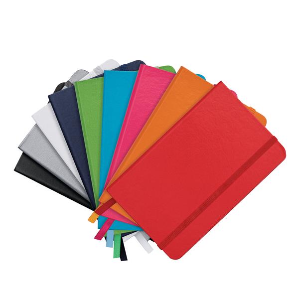 Notes ATTENDANT w formacie A6, z zaokrąglonymi rogami, zamykany gumką, z wszytymi zakładkami, 80 kartek w linie, gramatura ok. 80 g/m2.