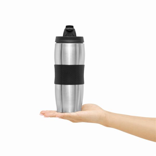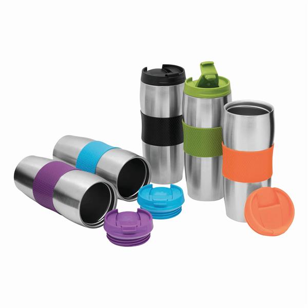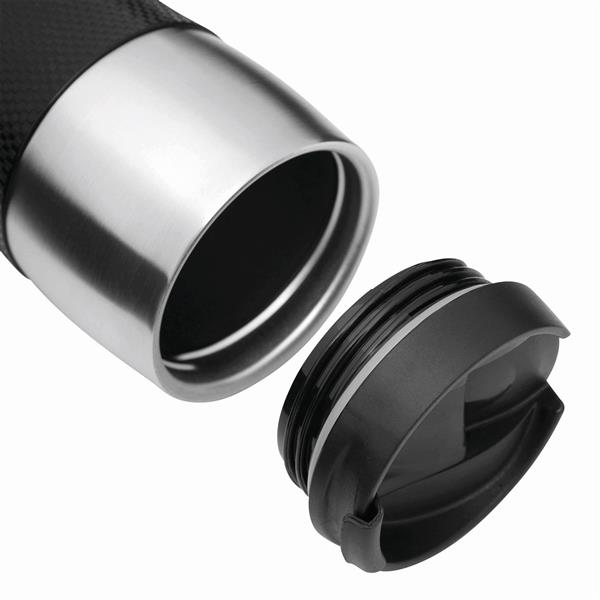Kubek termiczny AU LAIT wykonany ze stali nierdzewnej (wewnątrz i na zewnątrz). Odkręcane wieczko w różnych kolorach z otworem do picia, kolorowy plastikowy uchwyt i gumowana podstawa dla lepszej stabilności, poj. ok. 380 ml, pakowany w pudełko.