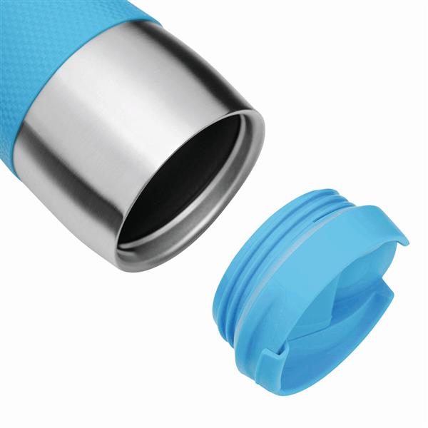 Kubek termiczny AU LAIT wykonany ze stali nierdzewnej (wewnątrz i na zewnątrz). Odkręcane wieczko w różnych kolorach z otworem do picia, kolorowy plastikowy uchwyt i gumowana podstawa dla lepszej stabilności, poj. ok. 380 ml, pakowany w pudełko.