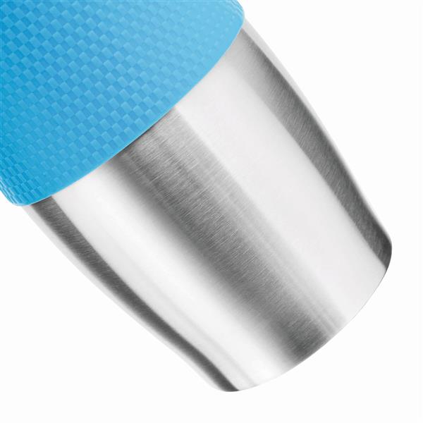 Kubek termiczny AU LAIT wykonany ze stali nierdzewnej (wewnątrz i na zewnątrz). Odkręcane wieczko w różnych kolorach z otworem do picia, kolorowy plastikowy uchwyt i gumowana podstawa dla lepszej stabilności, poj. ok. 380 ml, pakowany w pudełko. Materiał: Stal nierdzewna/Silikon/Plastik Kolor: niebieski, srebrny Tagi: Kubki,filiżanki,przybory kuchenne,artykuły gospodarstwa domowego,kubki/garnki termiczne,akcesoria podróżne,kubki do kawy