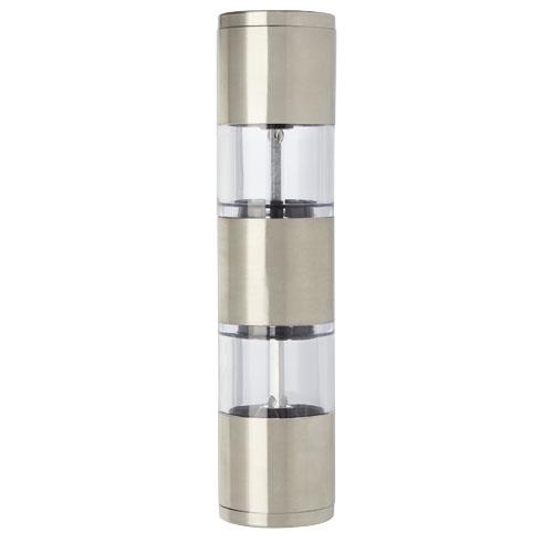2-stronny młynek z jedną końcówką do soli i drugą do pieprzu. Pieprz i sól nie wchodzą w skład zestawu. Może pomieścić 50 g soli i 36 g pieprzu. Pojemność: 80 ml.